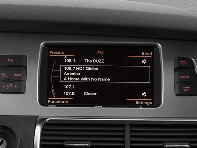 - Radio: Audi MMI Navigation Plus -inc: BOSE surround sound, 1CD/DVD-player, color driver information system, HDD navigation w/voice control, TFT color, WVGA 7-inch display screen, control knob w/joystick and buttons in center console, Operates climate control, central locking, instrument cluster, vehicle diagnostics, cellular phone, navigation, CD and radio functions (single CD/DVD player), Audi Connect w/online services and SIRIUS satellite radio w/90 day trial subscription
