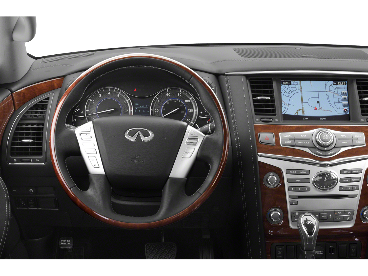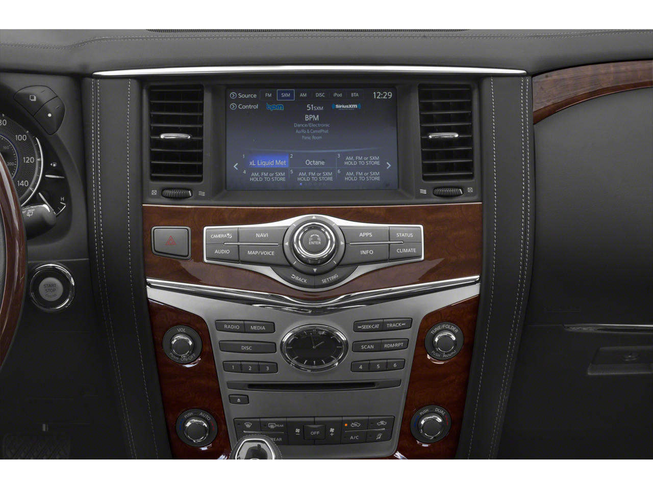 - Radio: AM/FM/HD Single In-Dash CD/DVD Player w/MP3 -inc: 8-inch WVGA color touch-screen display, INFINITI InTouch navigation w/voice recognition, lane guidance and 3D building graphics, INFINITI InTouch services includes 12-months of safety, security, and convenience services, Bose 13-speaker premium sound system including 2 subwoofers, streaming audio via Bluetooth® wireless technology, Radio Data System (RDS), speed-sensitive volume control, SiriusXM satellite radio w/90-day complimentary trial access, SiriusXM Traffic w/4-year complimentary trial access to real-time traffic information, SiriusXM Travel Link w/4 year complimentary trial access to fuel prices, weather, movie times, stocks and sports and 2 USB connection ports for iPod interface and other compatible devices
