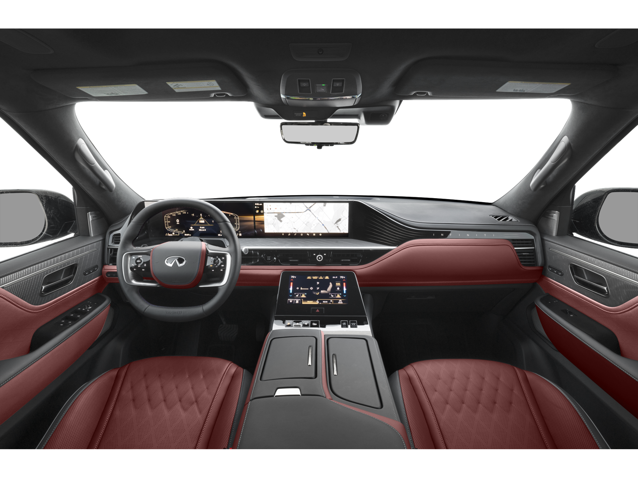- Radio: Klipsch Reference Premiere Audio System -inc: 24-speakers, 3D audio, Active Sound Enhancement (ASE), demo mode, individual audio headrest speakers for driver and front passenger, INFINITI InTouch services, 4G Wi-Fi hotspot, dual 14.3" infotainment screens w/9" front control panel, Google built-in w/navigation, Amazon Alexa built-in w/hotword, Bluetooth® hands free phone and audio streaming, wireless Apple CarPlay and Android Auto, hybrid radio, SiriusXM w/360L (3-month trial included) and 2 USB type-C ports